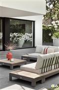 Zádová opěrka je z teakového dřeva s povrchovou úpravou Coastal.