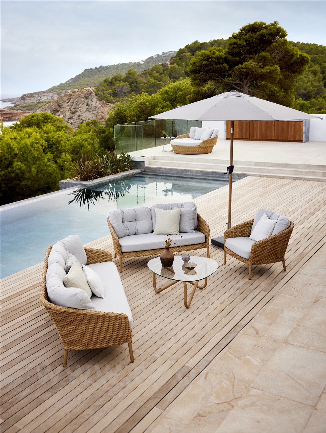 Sada polstrů pro 2-místnou pohovku Ocean Large, Cane-line, venkovní látka AirTouch grey
