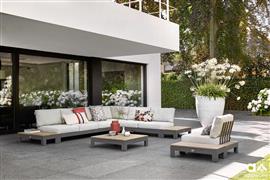 Sedáky a opěrné polštáře jsou z venkovní látky s rychleschnoucí výplní.