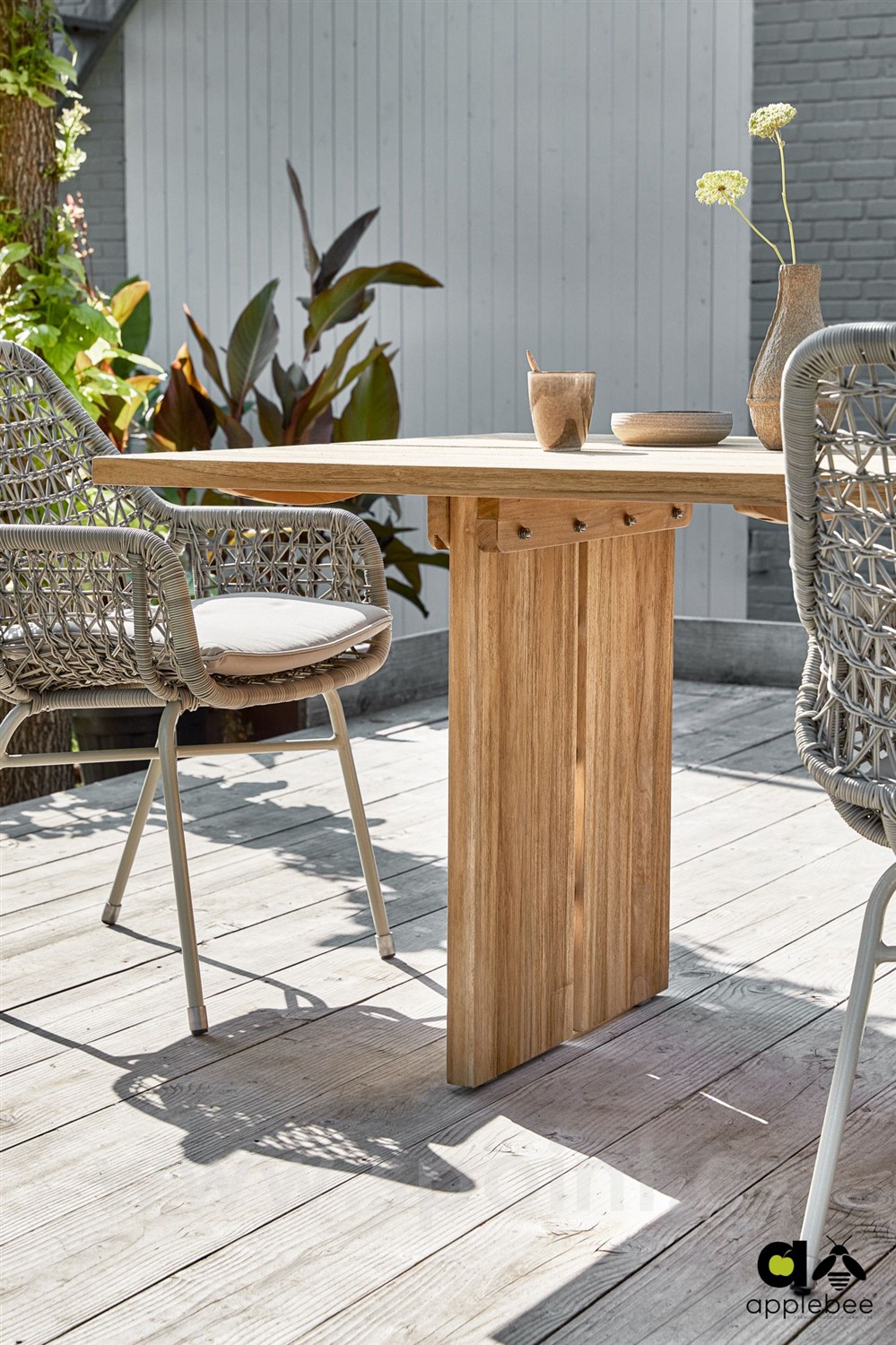 Venkovní jídelní stoly z teakového dřeva Joie de Vivre od značky Apple Bee.
