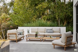 Venkovní modulová sedací sestava z přírodního teakového dřeva Sling od značky Apple Bee.