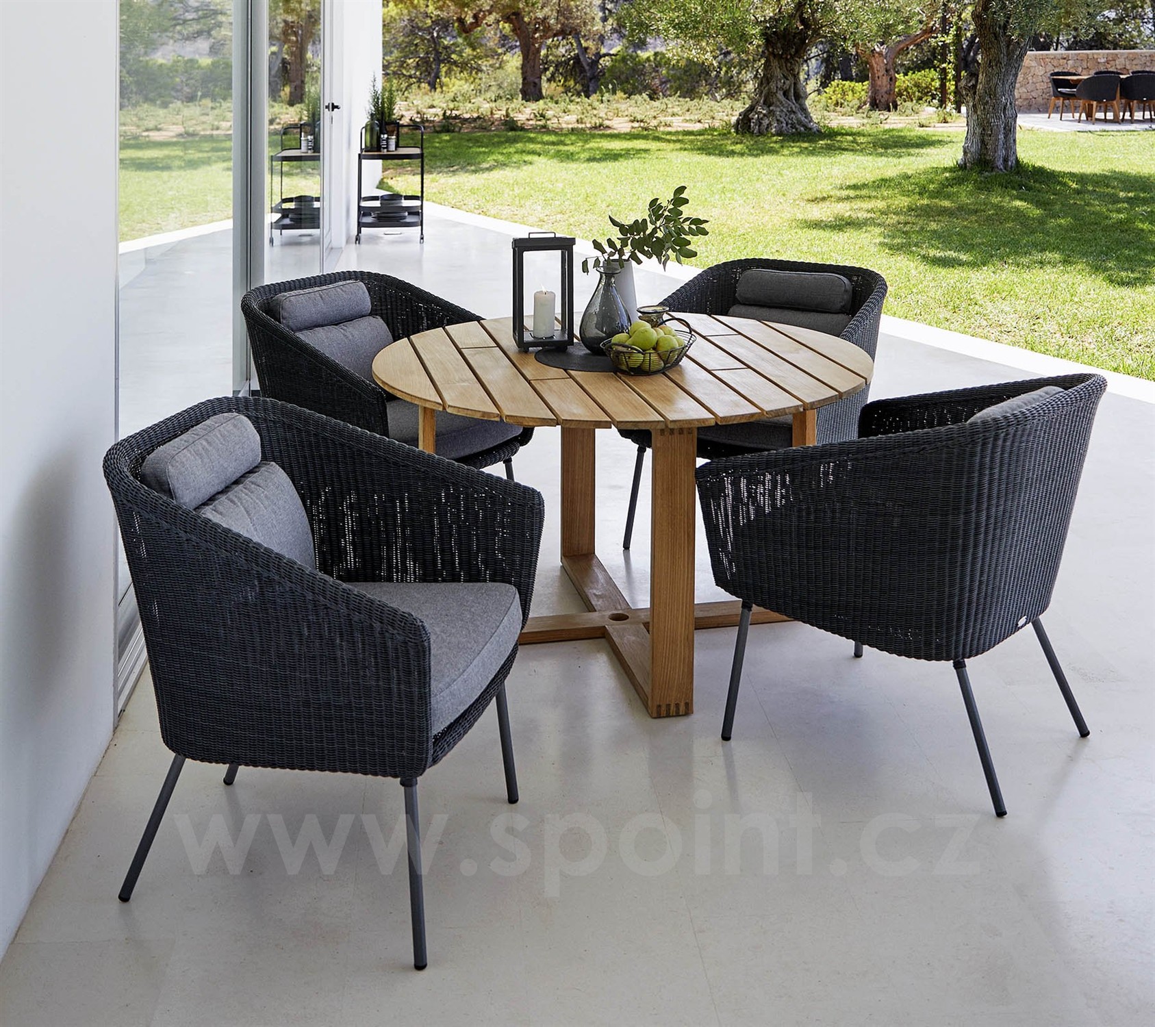 Komfortní venkovní jídelní nábytek Mega značky Cane-line. Lze kombinovat s sedacím