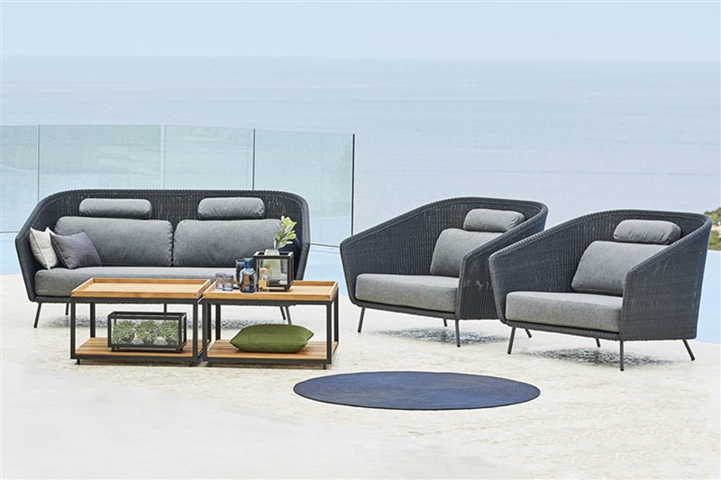 Komfortní venkovní sedací nábytek Mega značky Cane-line. Lze kombinovat s jídelním