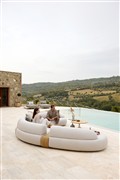 praktickou funkčností. Nízké sedáky a měkké polštáře