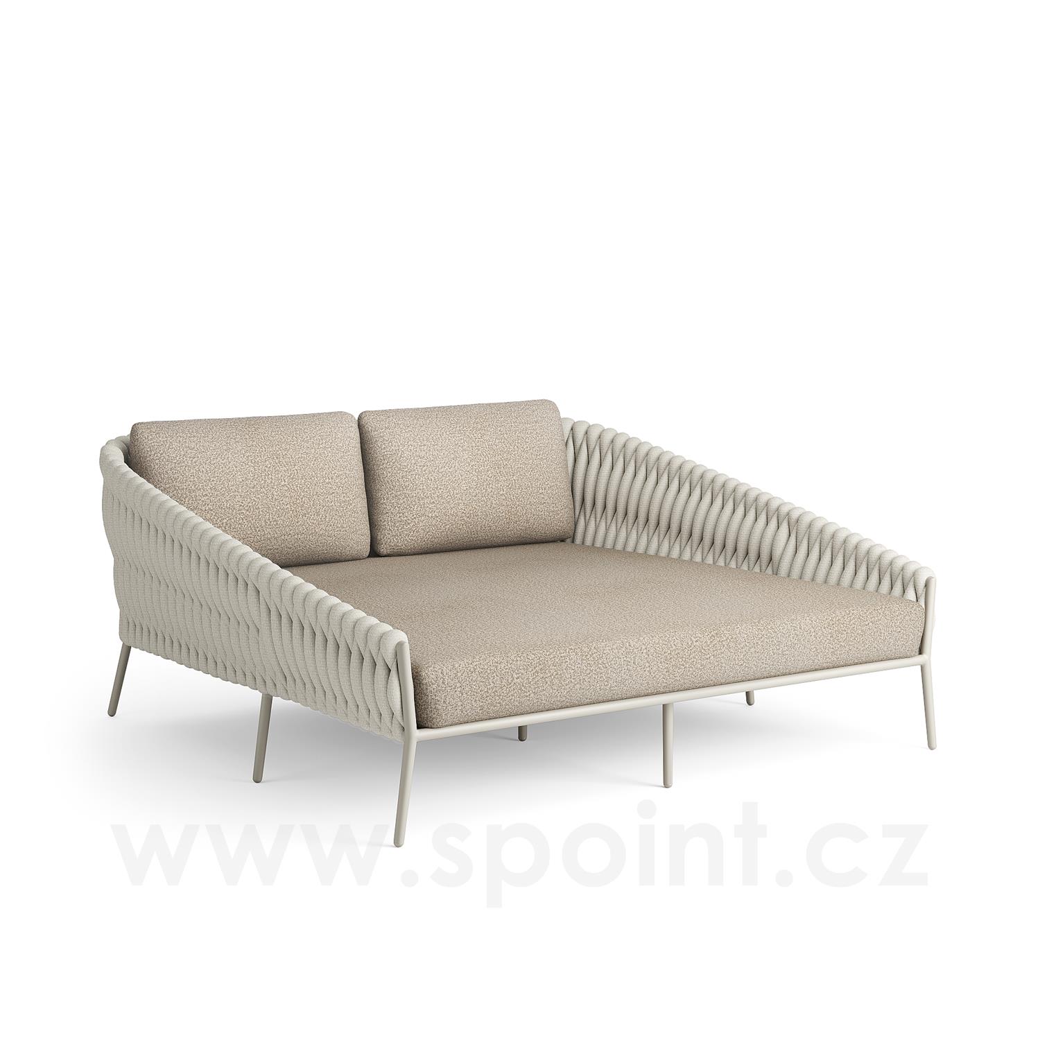 Denní postel Fortuna Socks, Jati Kebon, 167x172x83 cm, rám hliník barva dune mat, výplet barva linen 14 mm, sedáky venkovní látka Sunproof Jalousie Beige