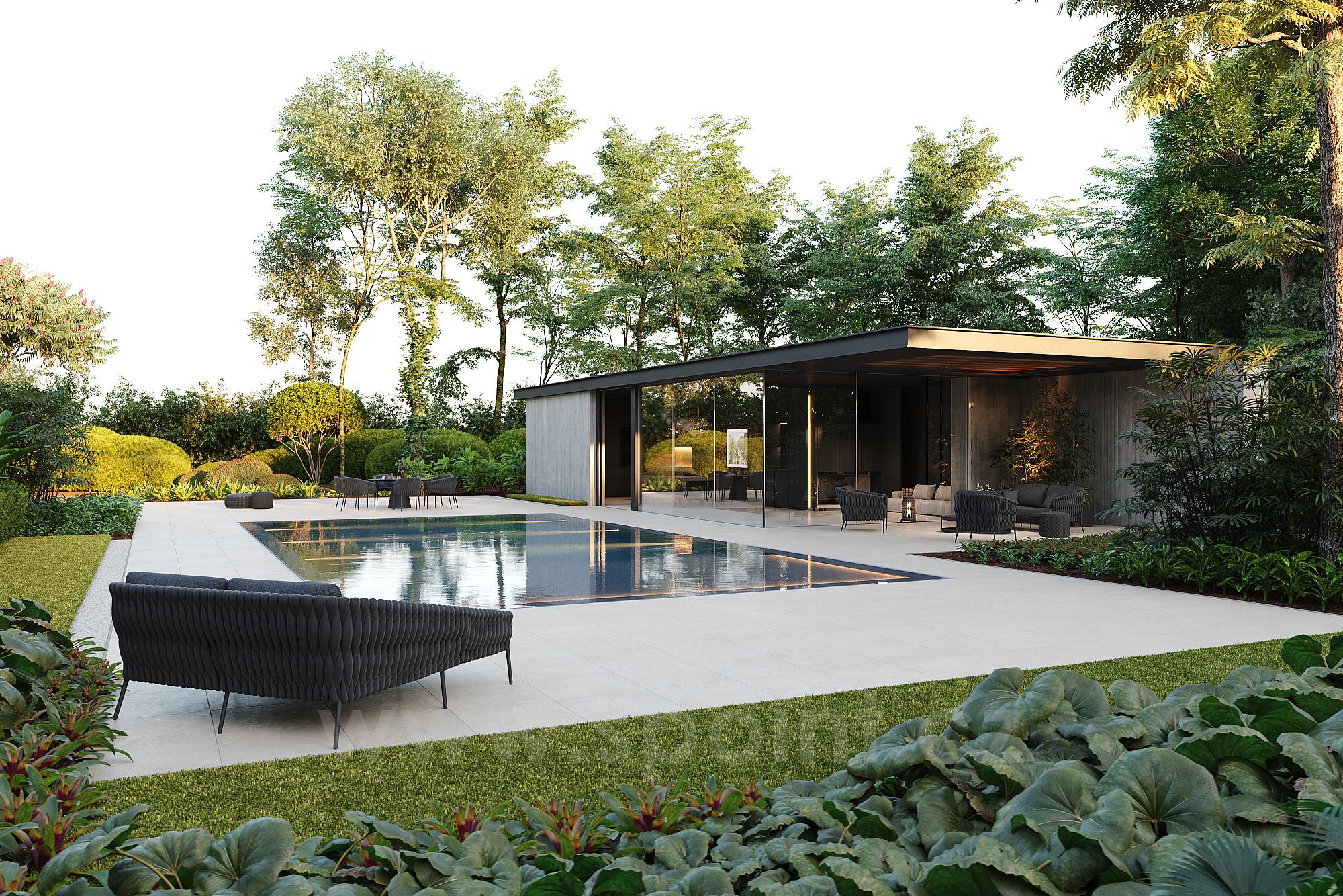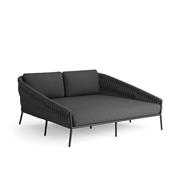 Denní postel Fortuna Socks, Jati Kebon, 167x172x83 cm, rám hliník barva charcoal mat, výplet barva charcoal 14 mm, sedáky venkovní látka Sunproof Jalousie Dark Grey