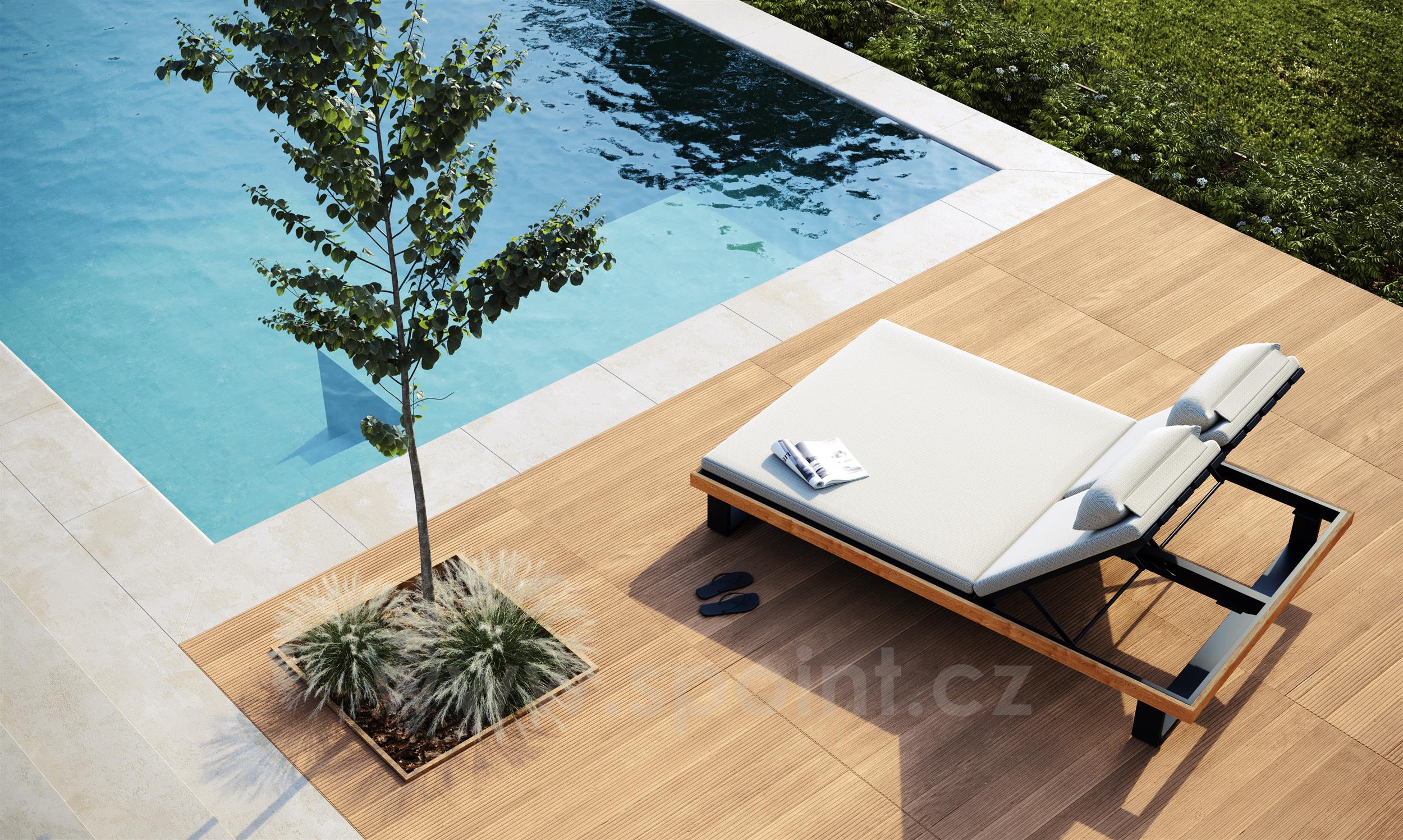 Venkovní polohovací dvojlehátko/denní postel z kolekce Truro od belgické značky Jati Kebon.