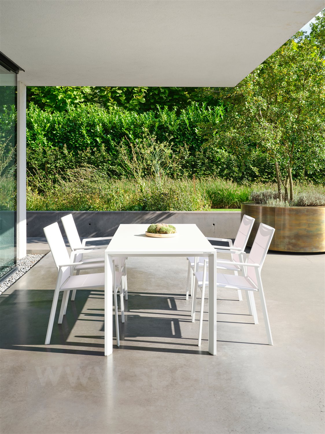 Kolekce zahradního jídelního nábytku z hliníku.
