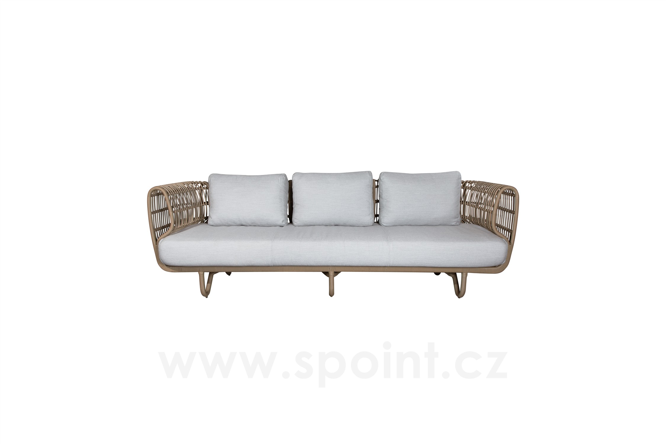 3-místná pohovka Nest, Cane-line, 227x90x74 cm, rám hliník, výplet umělý ratan barva natural, sedáky venkovní látka Airtouch light grey