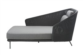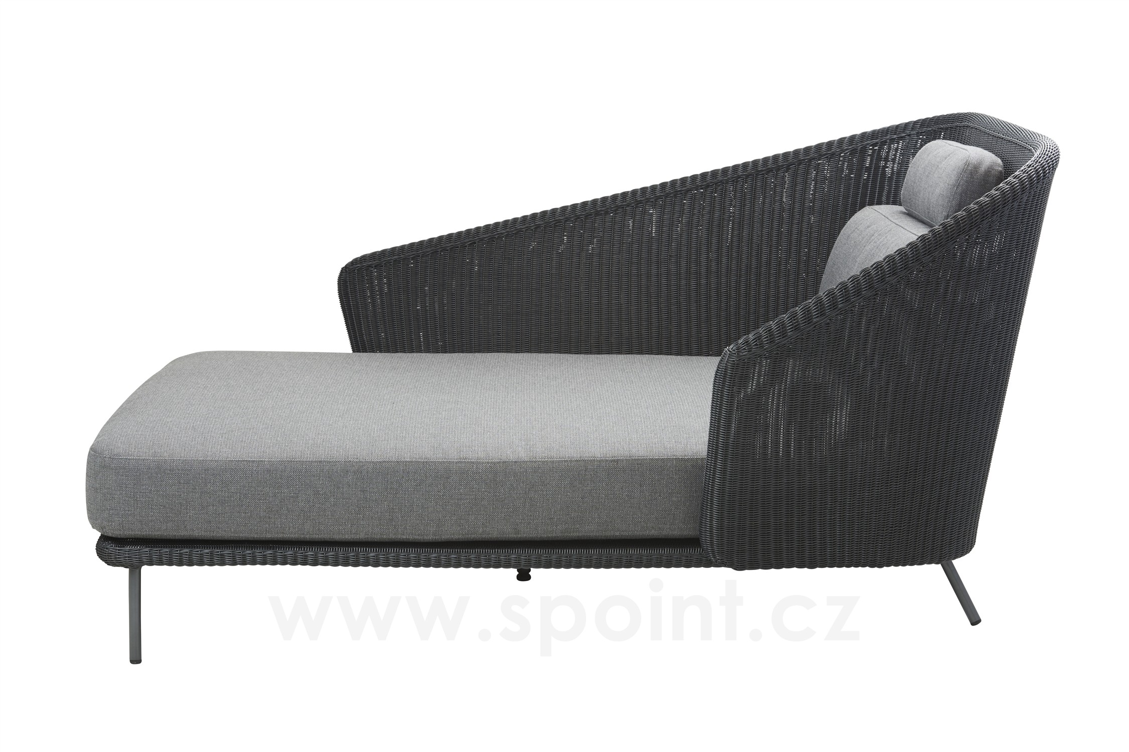 Tagesbett/Relaxmodul rechts Mega, Cane-line, 128x180x91 cm, Metallrahmen, Geflecht aus Kunstrattan in Graphite, Sitzpolster aus Outdoor-Stoff SoftTouch grey