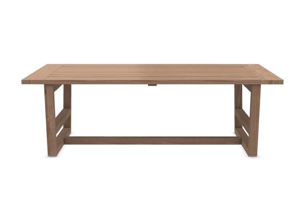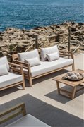 Modulová sedací sestava a konferenční stoly z teakového dřeva.