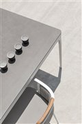 Hliníkové jídelní stoly s deskami z teaku, hliníku nebo keramiky.