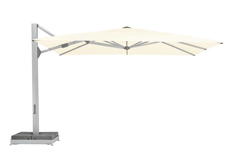 Luxusní boční slunečník Ambiente Nova značky Glatz určený pro náročné privátní zákazníky nebo pro profesionální použití v restauracích, hotelech, welness apod. V rámci příslušenství je možné slunečník elektromotorem, LED světly a otočnou základnou.