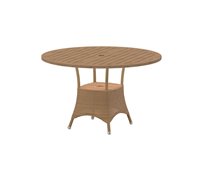 Zahradní ratanový jídelní stůl Lansing značky Cane-line. Rám jídelního stolu je z hliníku, výplet z umělého ratanu ve 2 barvách: béžová (natural), hnědo šedá (taupe). Deska stolu teak.