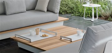 Doplňky Manutti obsahují servírovací podnosy ve třech rozměrech, venkovní světla, venkovní svícny a další.