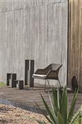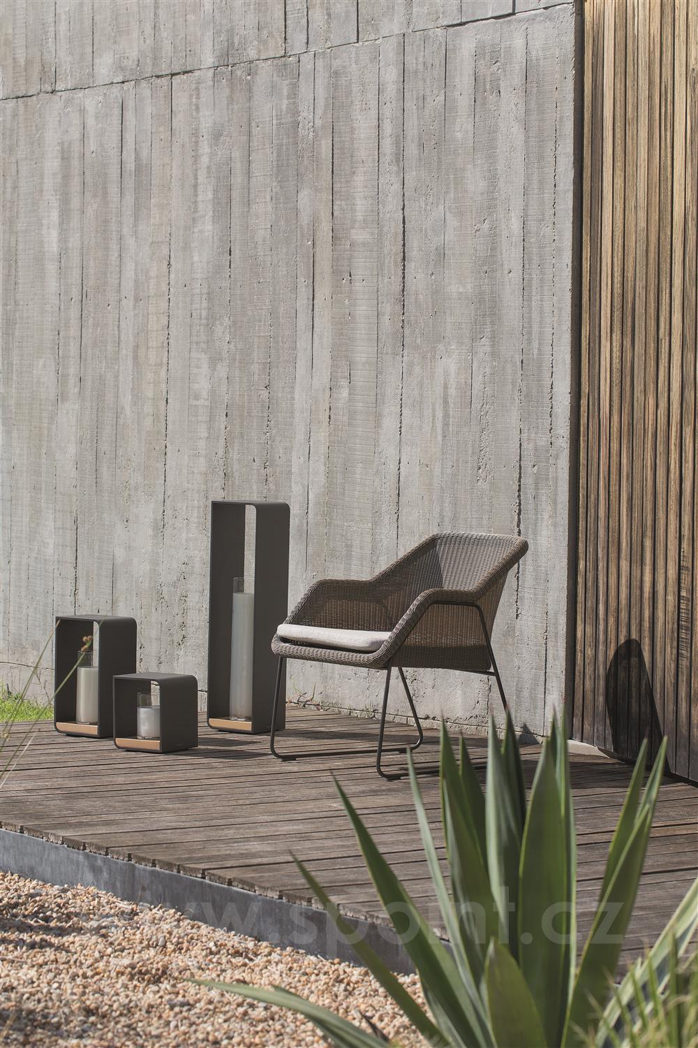 Kolekce zahradního relaxačního nábytku z umělého ratanu Mood značky Manutti. Součástí kolekce je relaxační zahradní křeslo a odkládací zahradní stolky v různých rozměrech. Zahradní křeslo má nerezovou lakovanou konstrukci a výplet z umělého ratanu. Sedáky jsou z venkovní látky s výplní z rychleschnoucí pěny, proto je kolekce vhodná pro celoroční použití bez nutnosti uklízet sedáky.