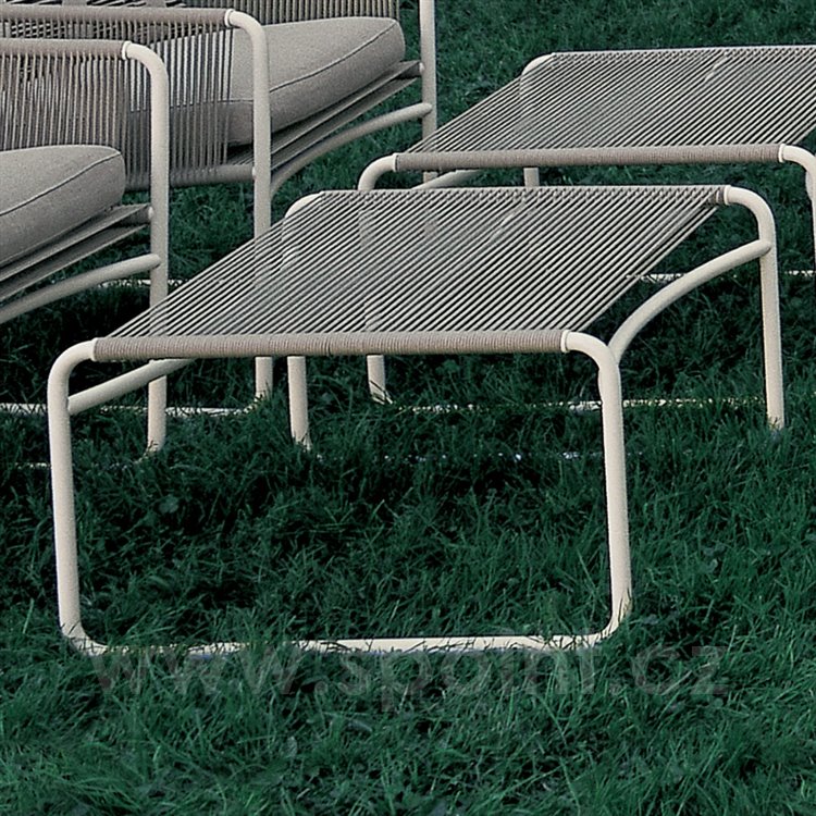 Nerezová podnožka Harp značky Roda. Konstrukce zahradní podnožky je z lakované nerezové oceli a lankového výpletu. Zahradní podnožka je v nabídce ve více barvách.