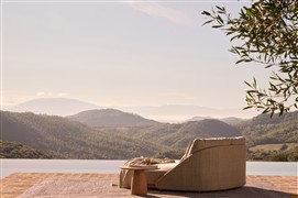Venkovní postel Elio Sofa, Tribu, 177x165x69,5 cm, rám teak, výplet lanko linen, polstrování látka kat.E