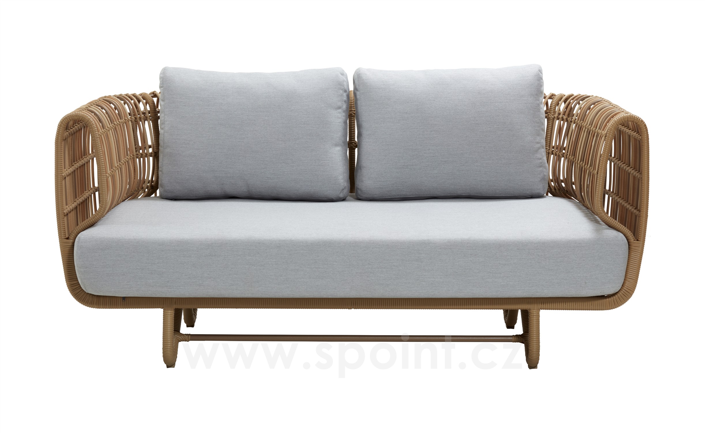 2-místná pohovka Nest, Cane-line, 165x88x73 cm, rám hliník, výplet umělý ratan barva natural, sedáky venkovní látka Airtouch light grey