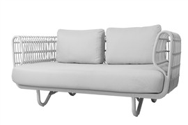 2-místná pohovka Nest, Cane-line, 165x88x73 cm, rám hliník, výplet umělý ratan barva white, sedáky venkovní látka Natté white