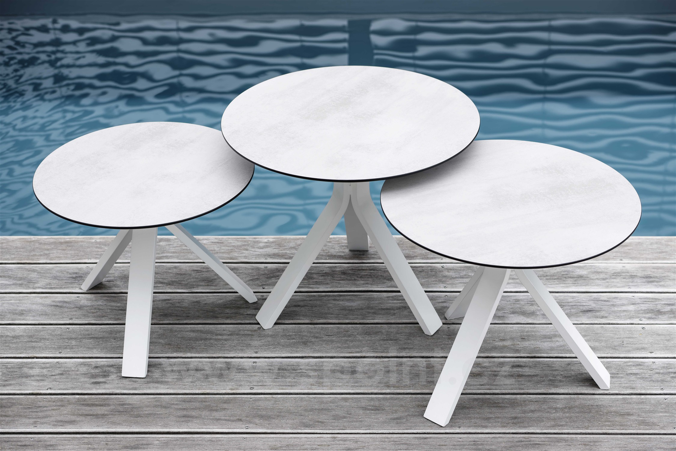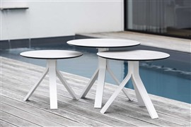 Oblíbené praktické venkovní stolky v různých velikostech, výškách a materiálech.