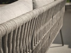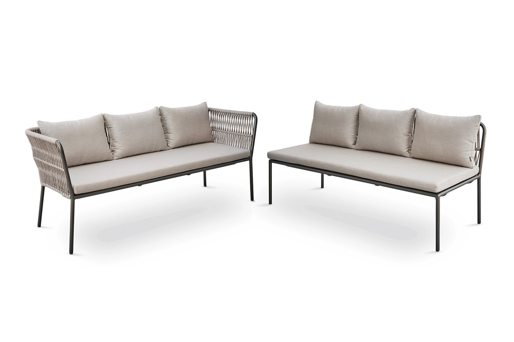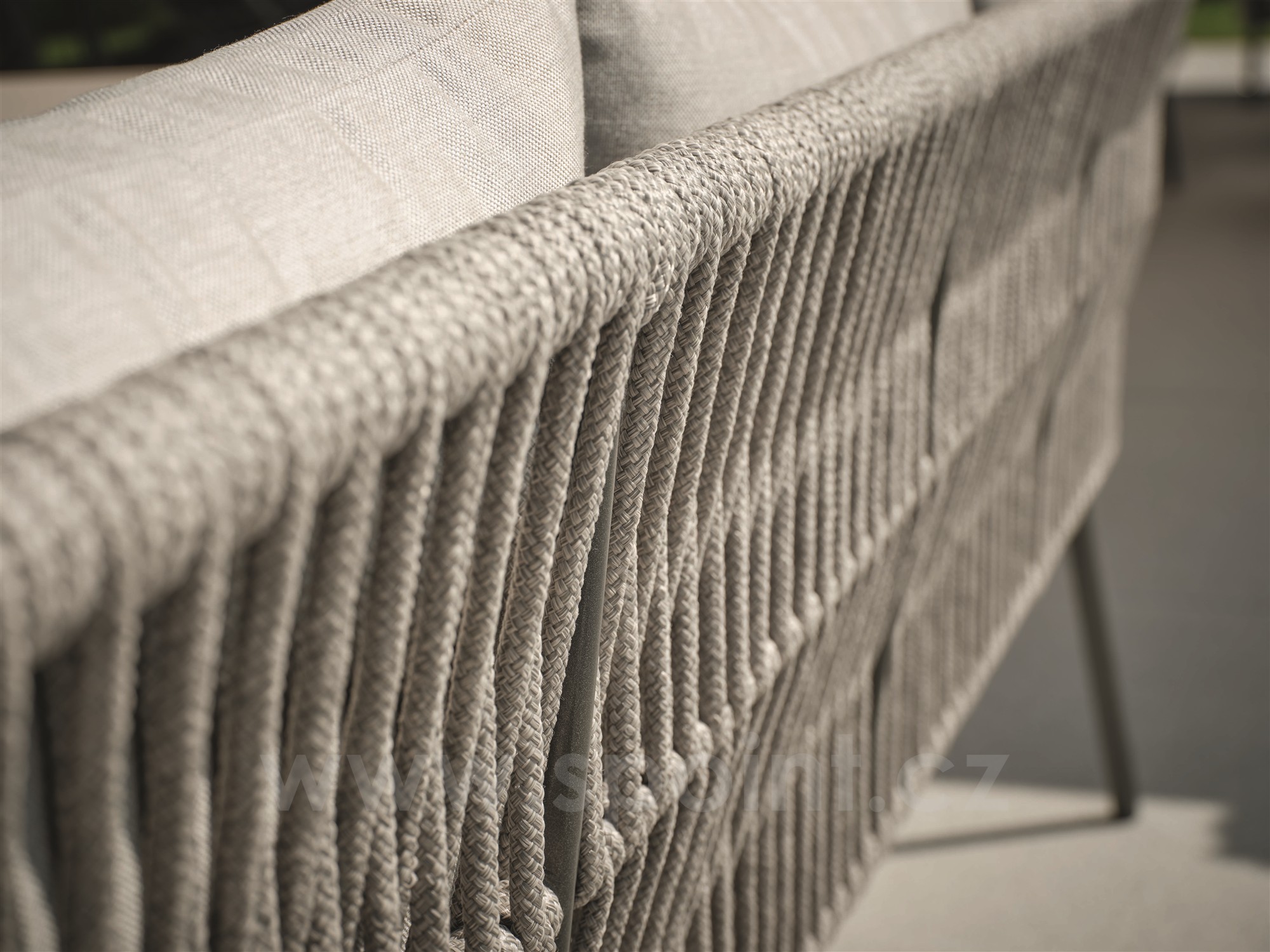 Vzdušná pohodlná zahradní jídelní křesla a modulární jídelní sestava s lavicemi na terasu nebo na zahradu.
