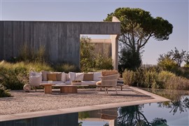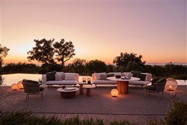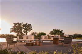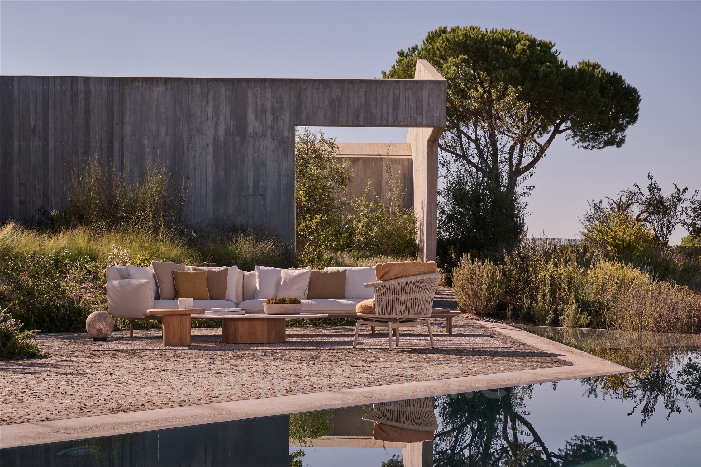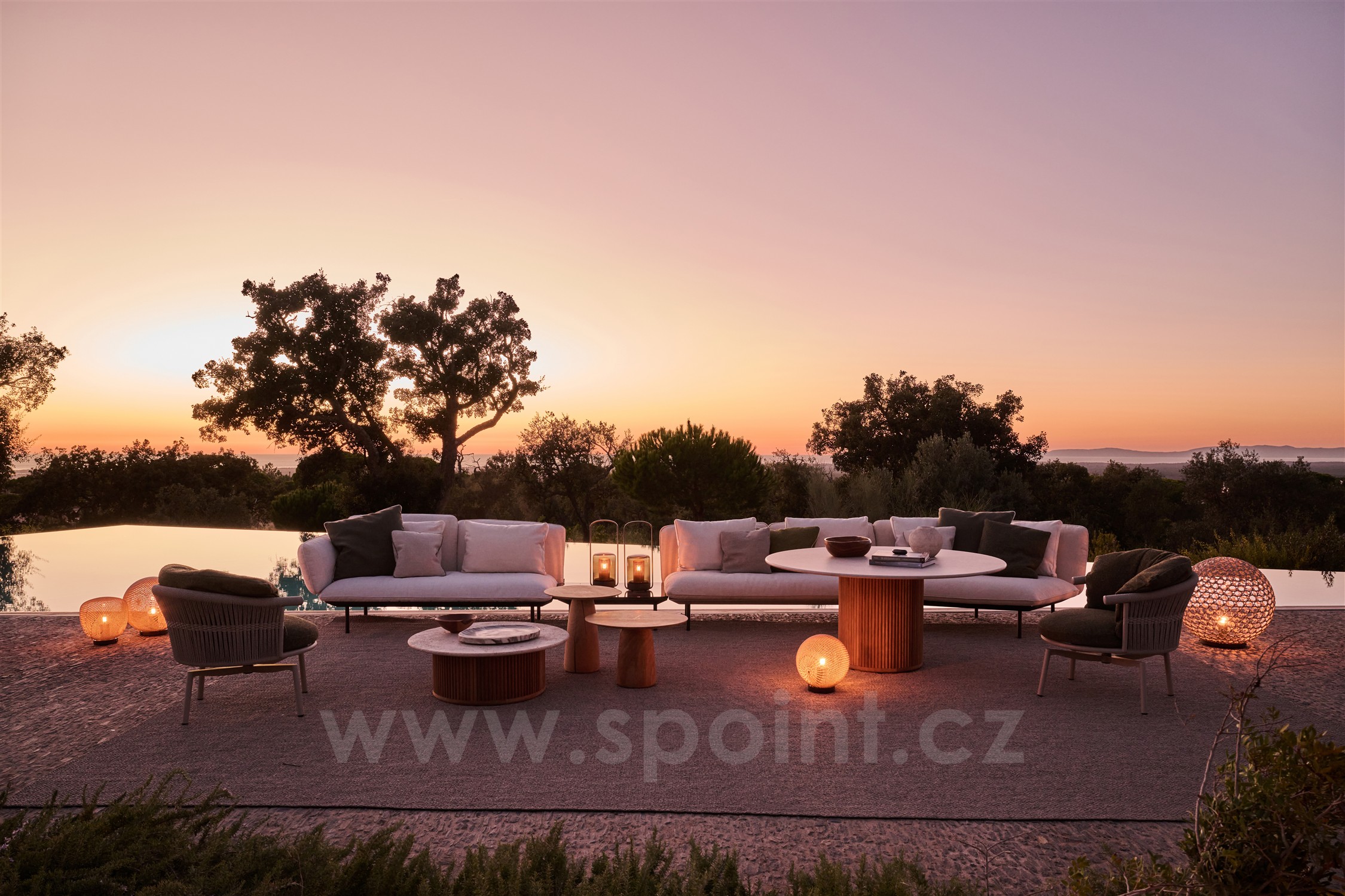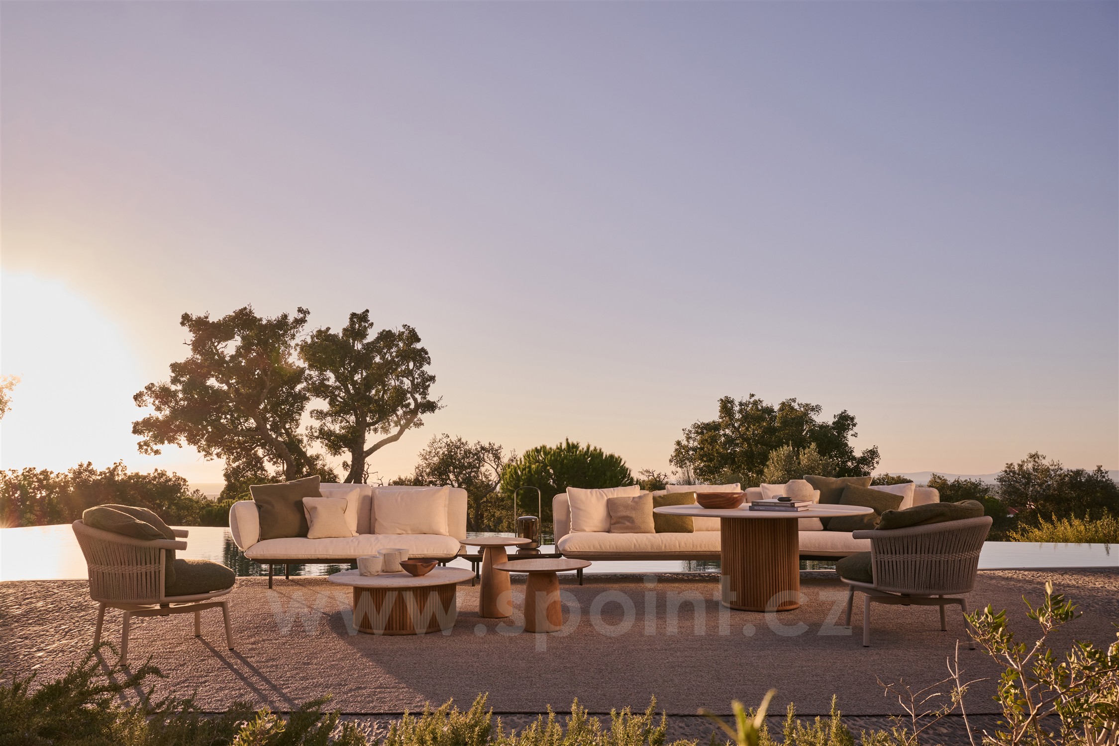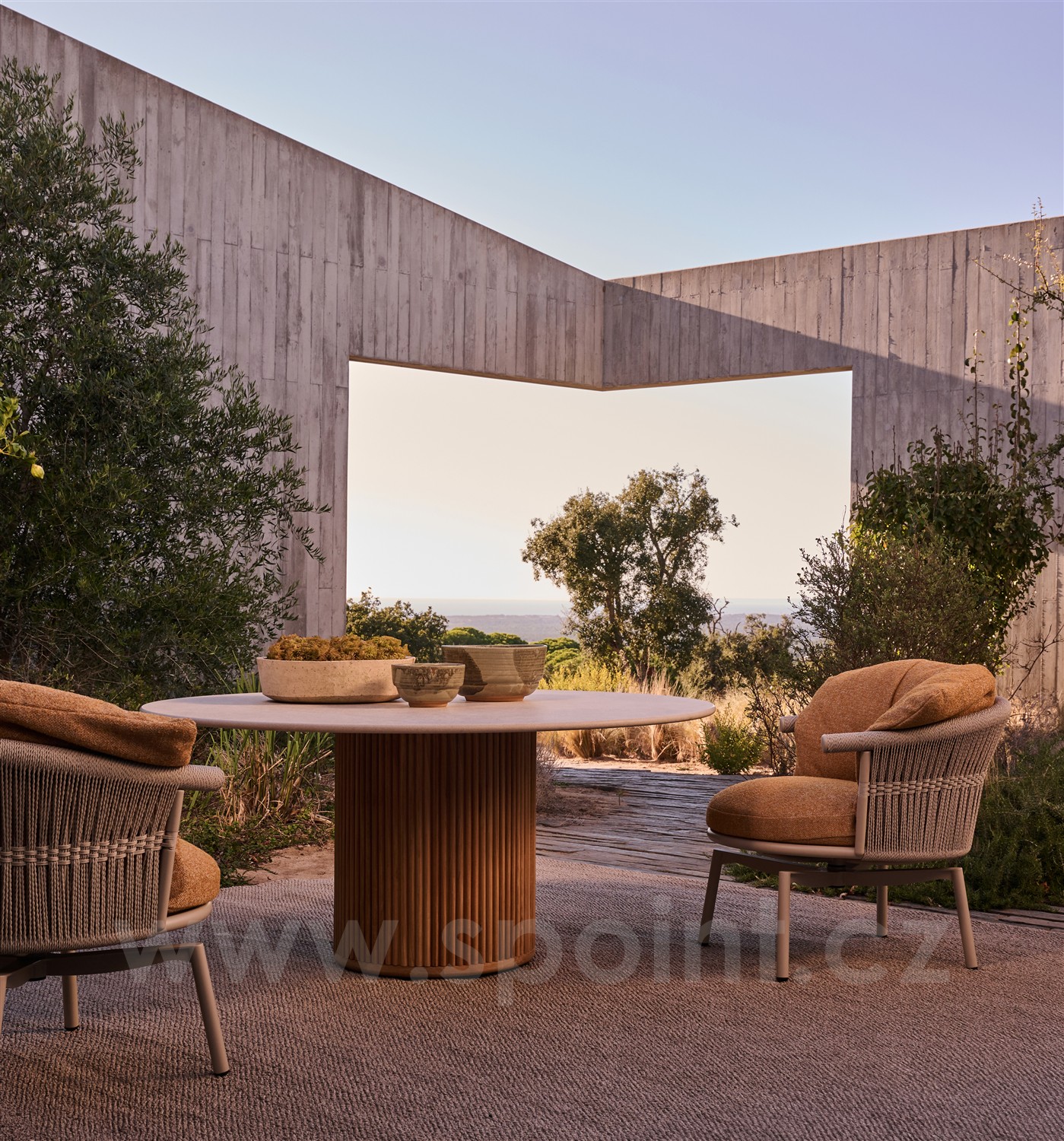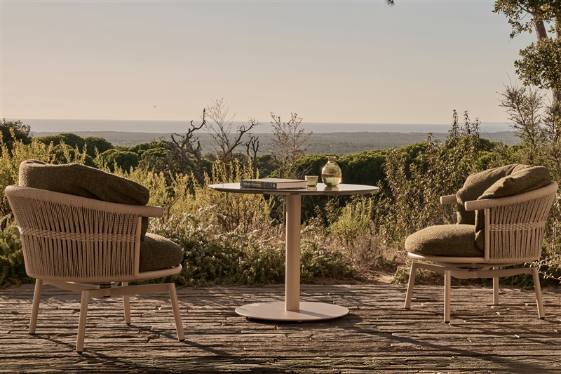 Designové otočné venkovní nízké křeslo Cesta značky Tribu s lankovým výpletem.