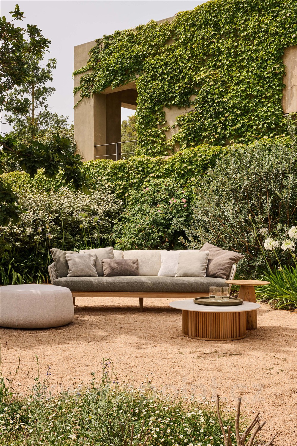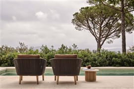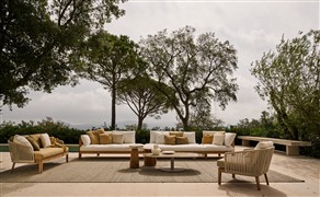 Originální oblíbená Tribú lounge kolekce z teakového dřeva a lankového výpletu.