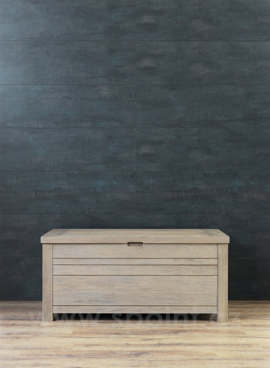 Truhla je celoteaková, na výběr z přírodního nebo mořeného teakového dřeva.