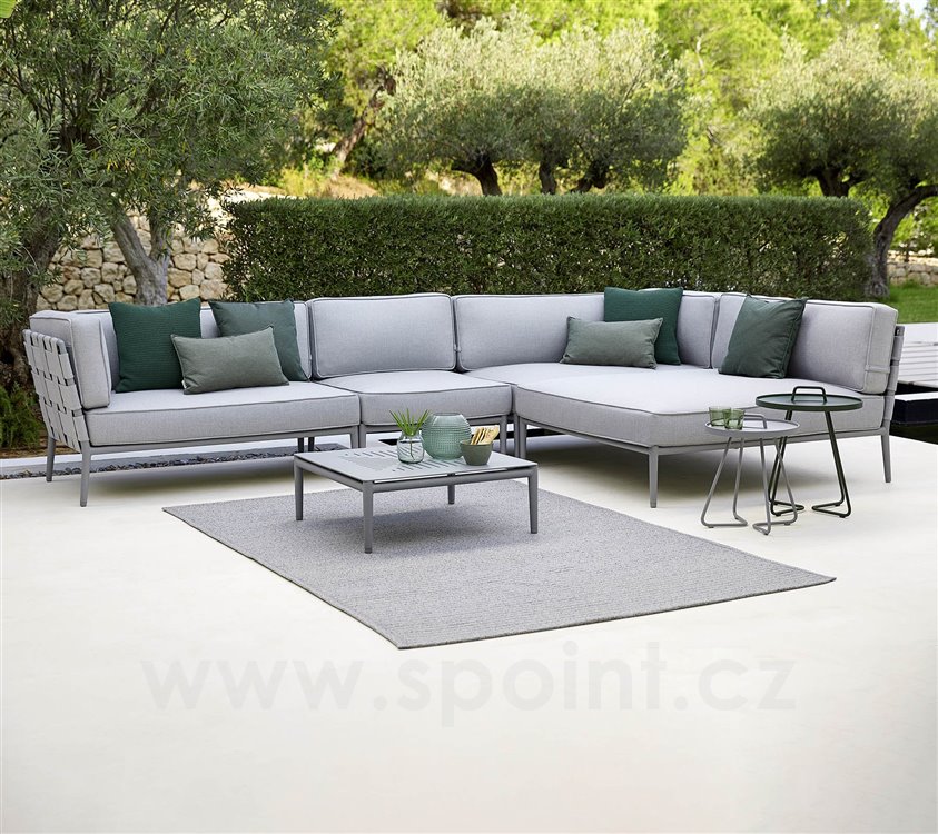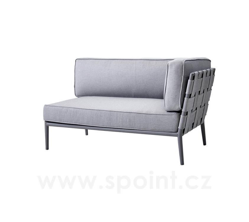 Ukončovací/rohový levostranný díl Conic, Cane-line, 140x82x82 cm, rám hliník barva grey, pásový výplet a sedáky venkovní látka barva AirTouch grey