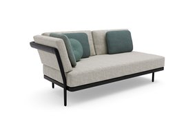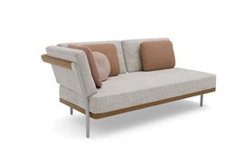 Pravostranný ukončovací díl Flows, Manutti, 176x83x73 cm, rám hliník šedobéžová flint a teak, rám bez sedáků