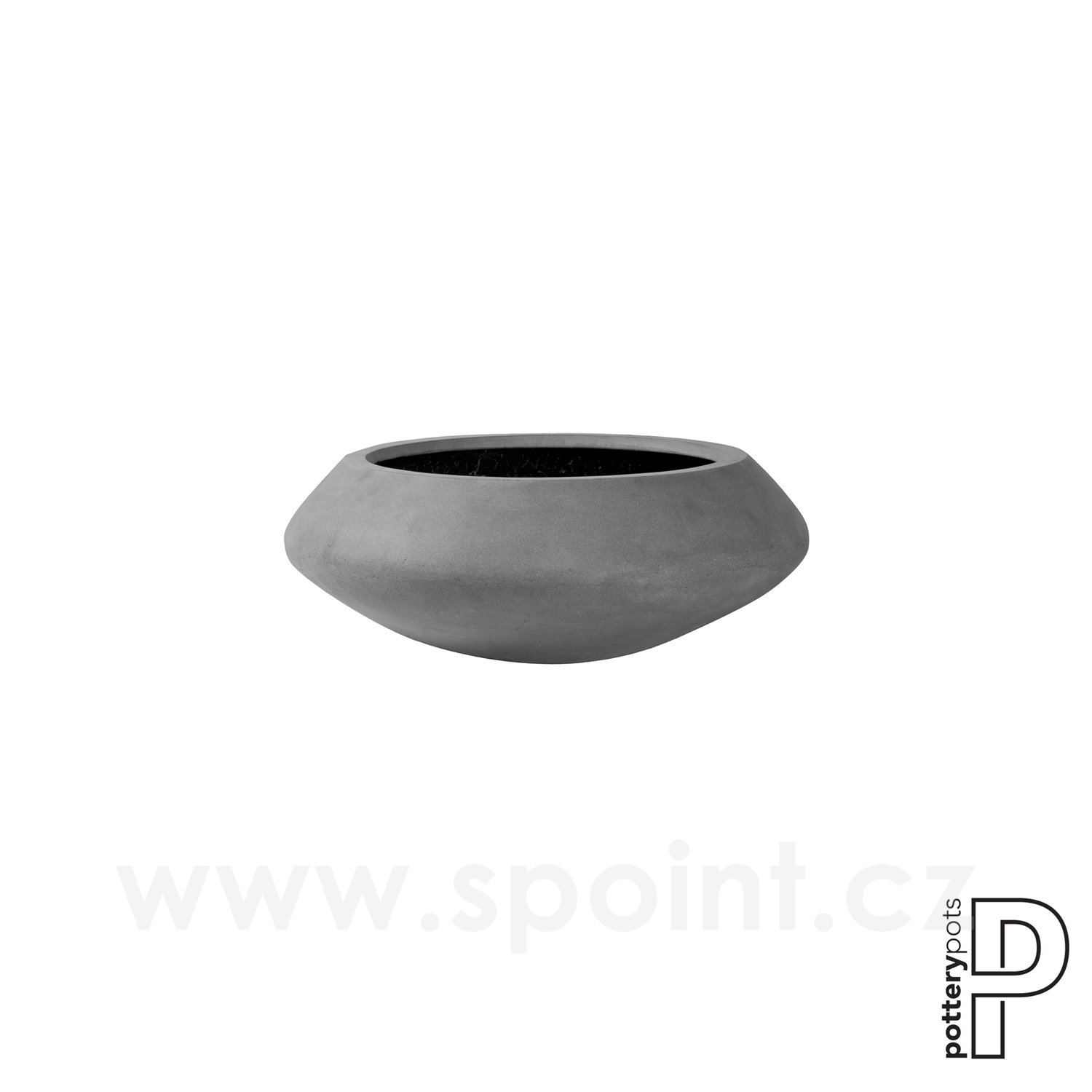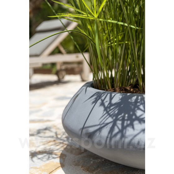Venkovní květináč kulatý Tara M, Grey (barva šedá), kolekce Natural, kompozit Fiberstone, průměr 60 cm x v 22,5 cm, objem cca 19 l