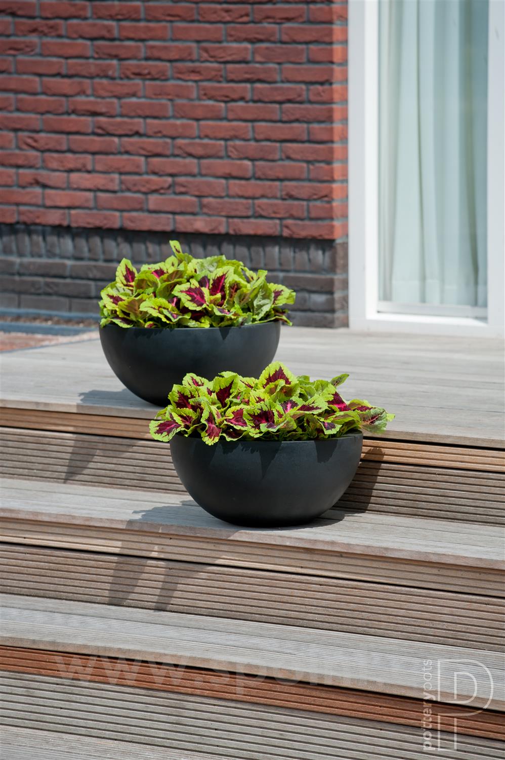 Venkovní květináč kulatý Vic Bowl S, Black (barva černá), kolekce Natural, kompozit Fiberstone, průměr 38,5 cm x v 18 cm, objem cca 7 l