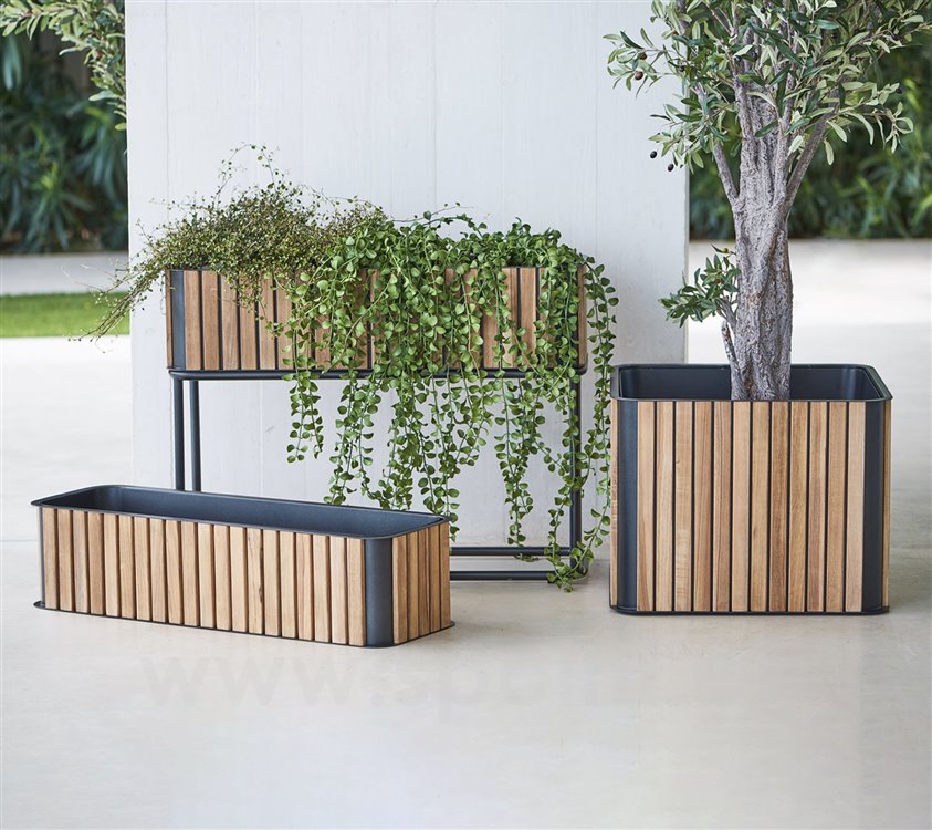 Teaková zahradní truhla kolekce Combine značky Cane-line. Truhla je vyrobena z lakovaného hliníku v kombinaci s teakovým dřevem.
