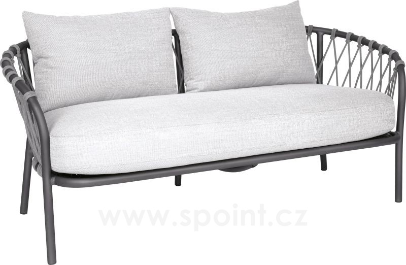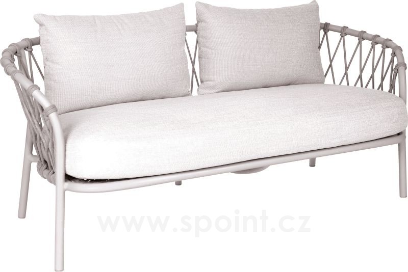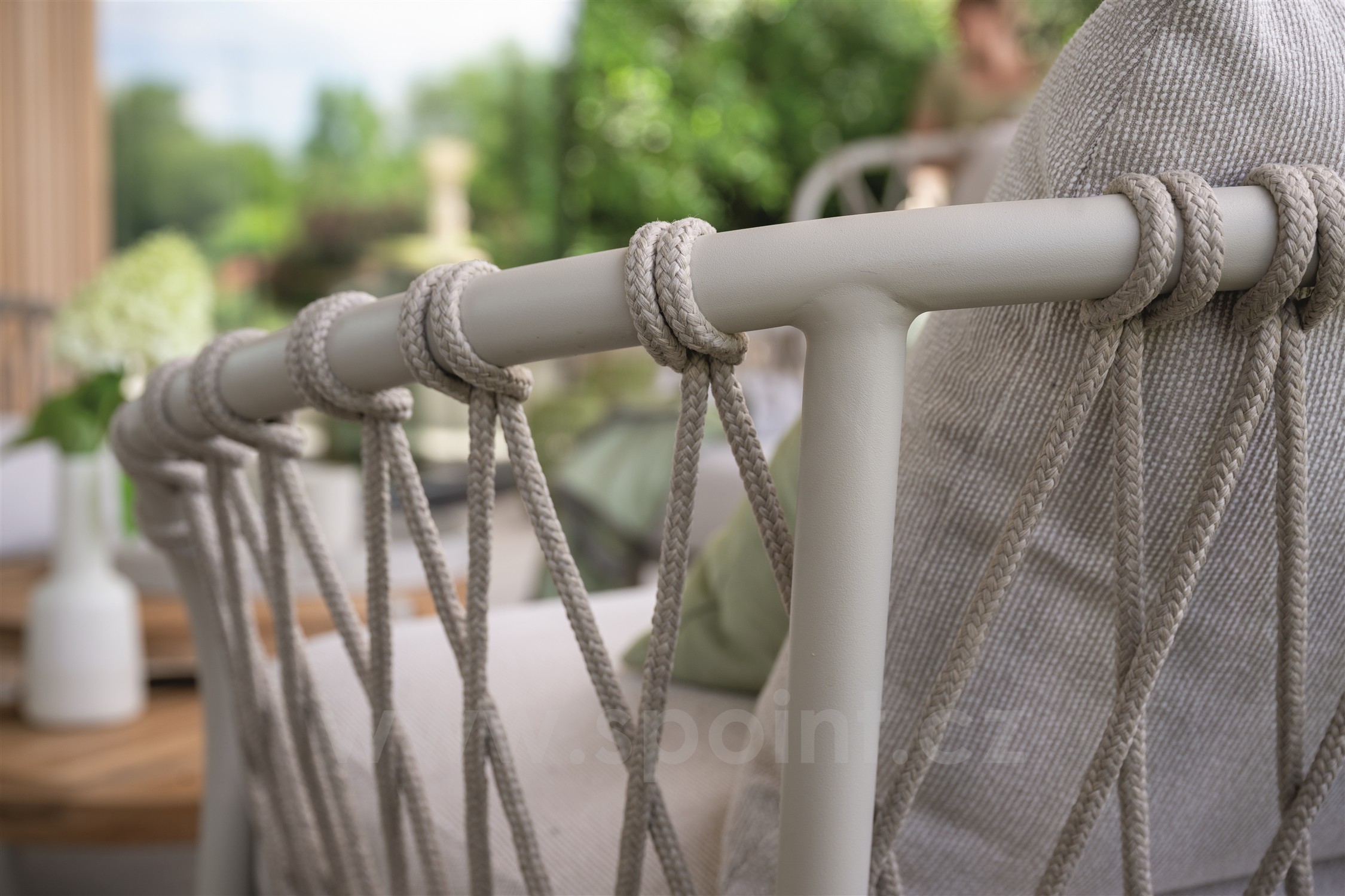 Rám pohovky je z lakovaného hliníku, který je opleten lankovým výpletem.