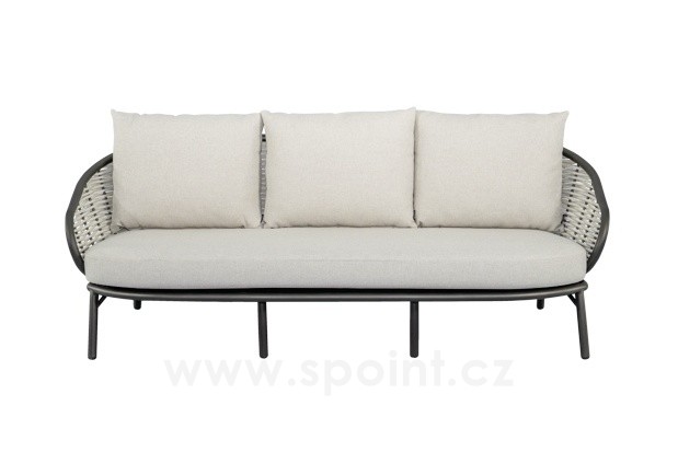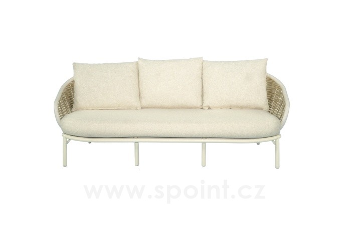 3-místná pohovka Pine Key, Apple Bee, 203x83,5x79 cm, rám hliník Oyster (krémová), výplet umělý ratan Seashell, sedáky venkovní látka Cotton Flower