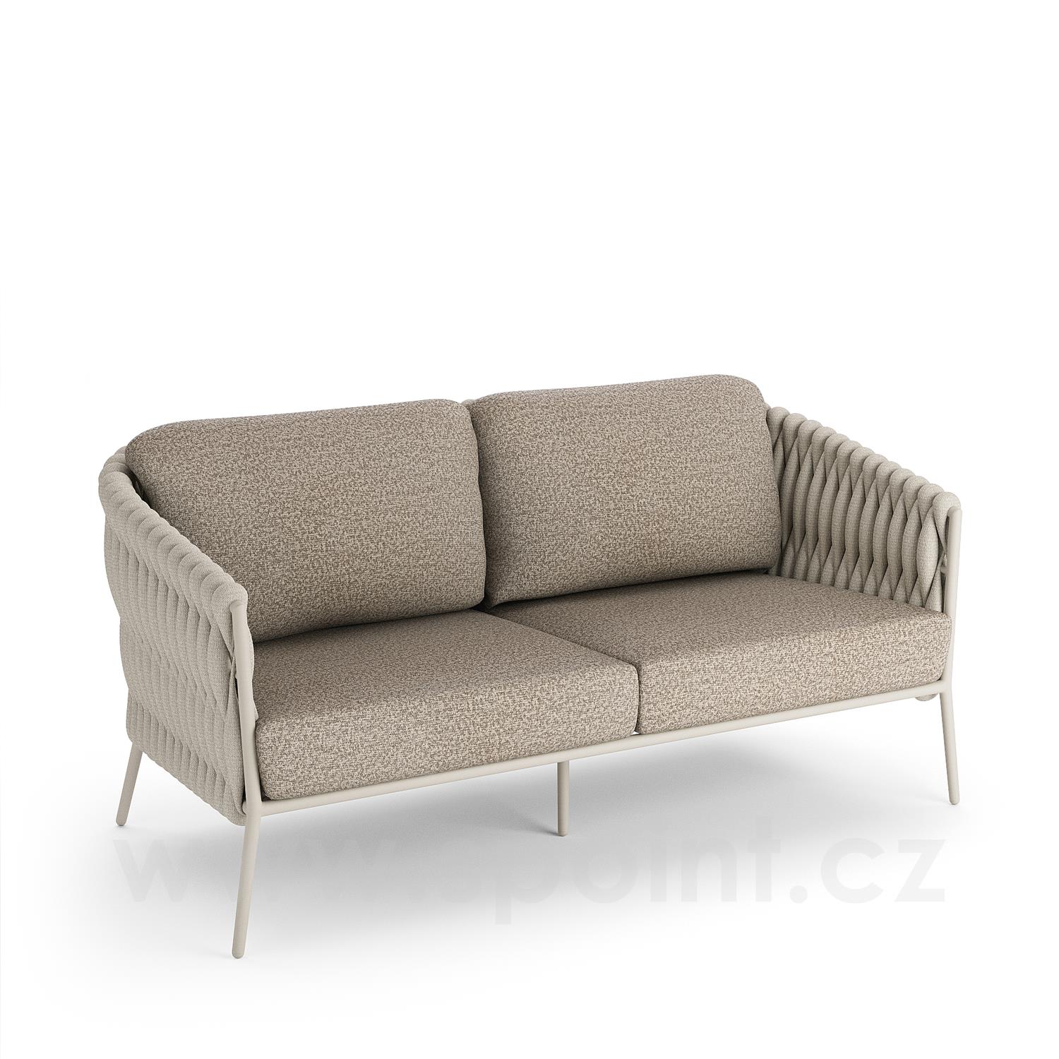 Pohovka 2,5-místná Fortuna Socks, Jati Kebon, 167x89x83 cm, rám hliník barva dune mat, výplet barva linen 14 mm, sedáky venkovní látka Sunproof Jalousie Beige