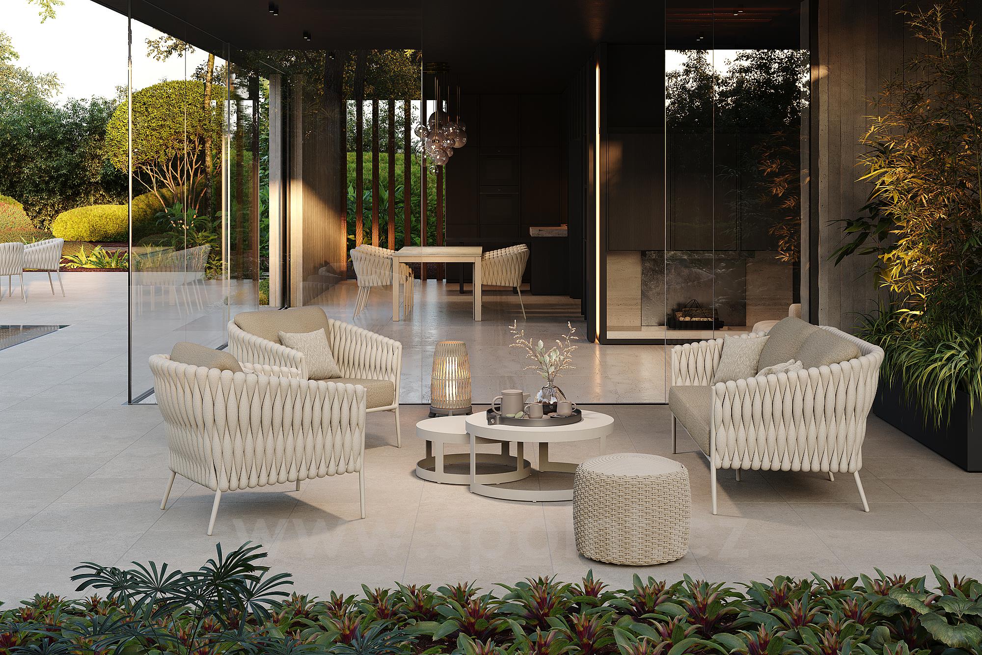 Pohovka 2,5-místná Fortuna Sock, Jati Kebon, hliník, lanko, venkovní látka