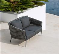 Pohovka 2,5-místná Fortuna Socks, Jati Kebon, 167x89x83 cm, rám hliník barva charcoal mat, výplet barva charcoal 14 mm, sedáky venkovní látka Sunproof Jalousie Dark Grey