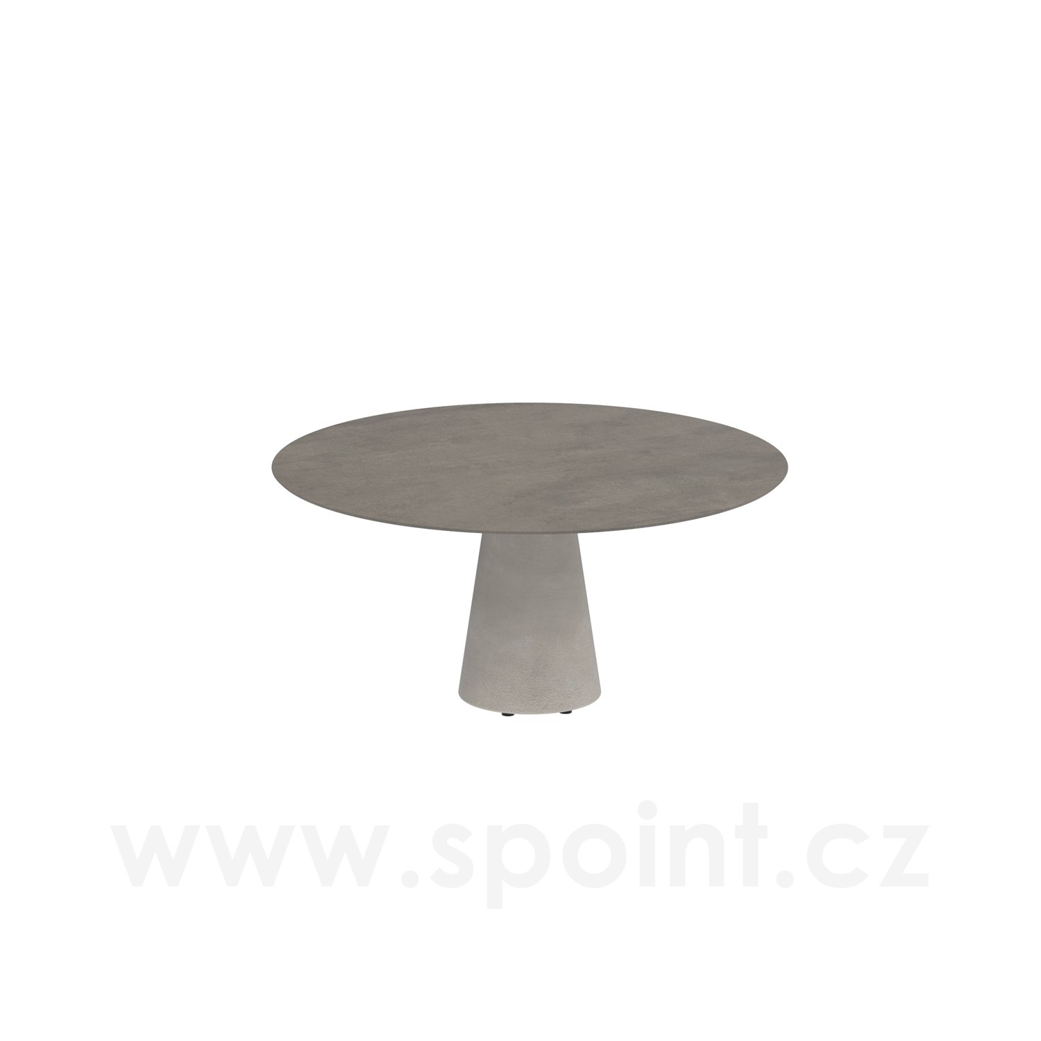 Betonový jídelní stůl snížený Conix, Royal Botania, kulatý 160x67 cm, podnož beton cement grey, deska keramika pearl grey