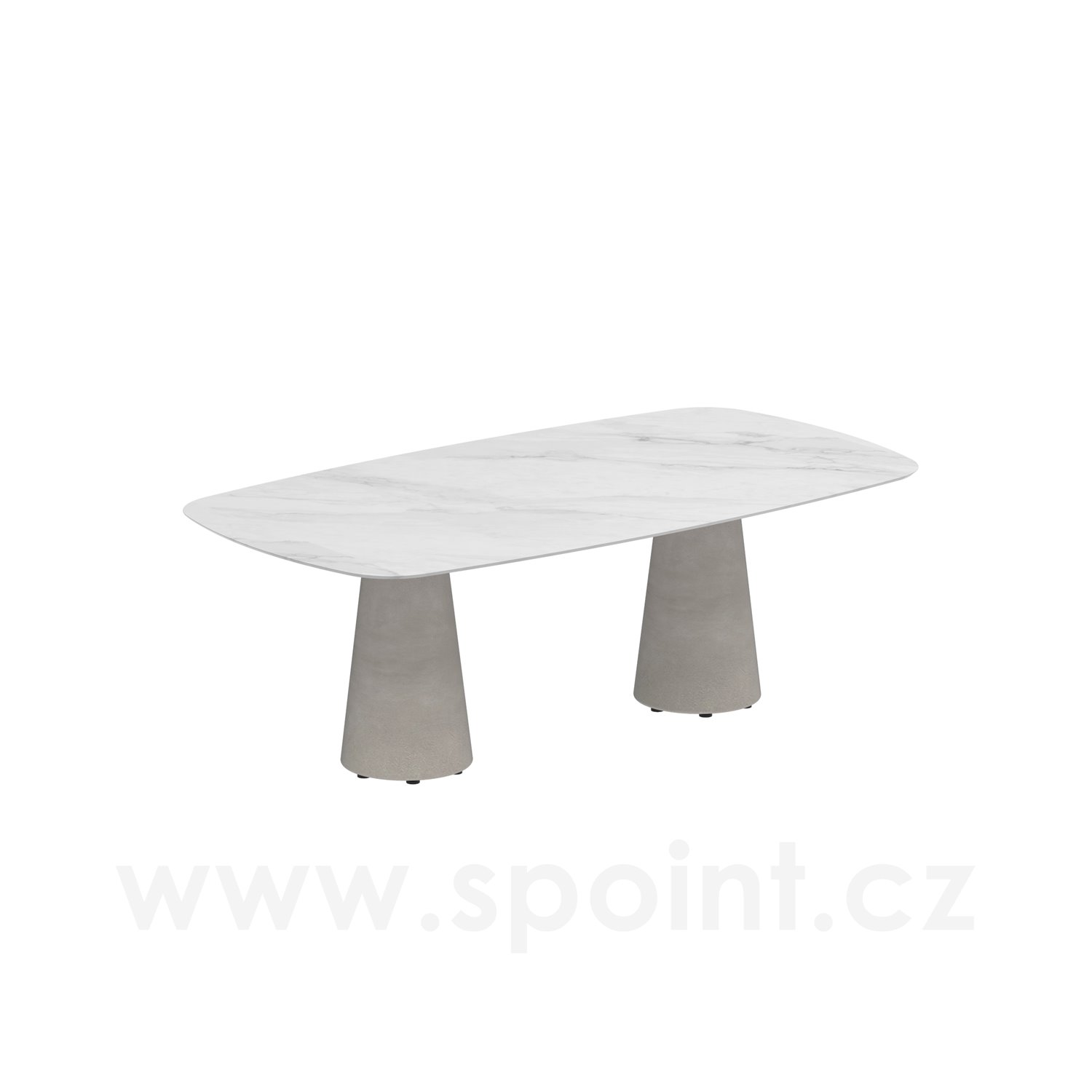 Betonový jídelní stůl Conix, Royal Botania, oválný 220x120x75 cm, podnož beton cement grey, deska keramika bianco statutario
