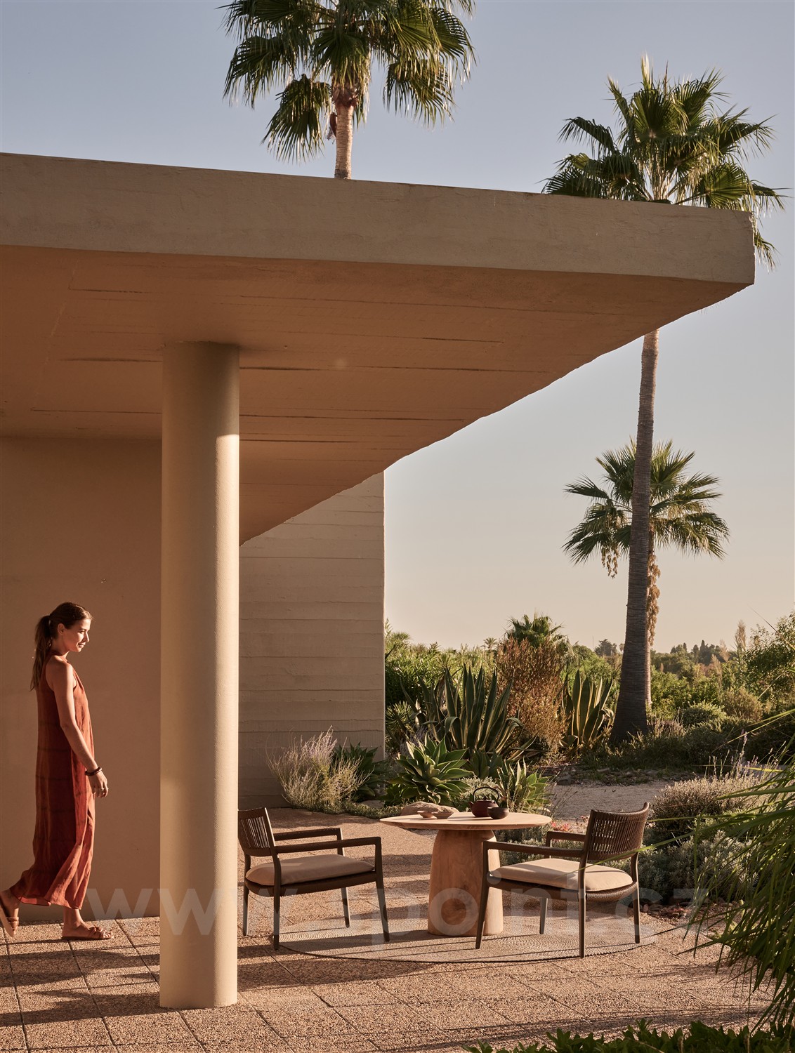 Snížený low dining jídelní stůl Dunes značky Tribu.