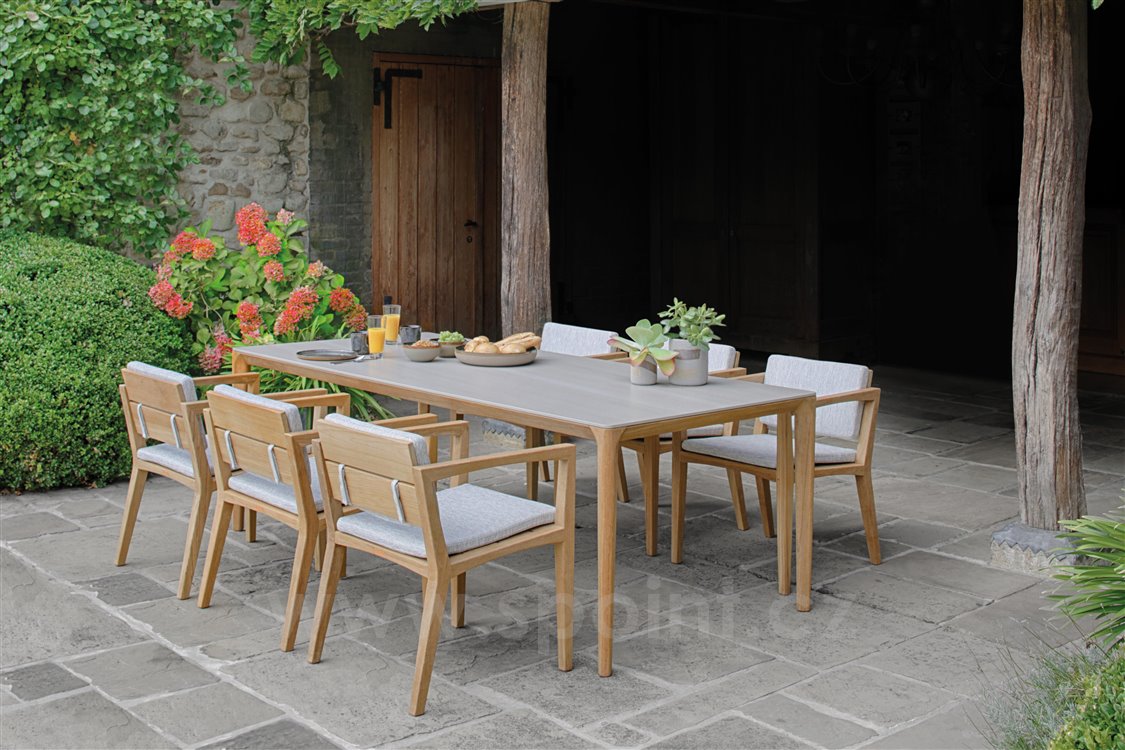 Jídelní stůl U-Nite, Royal Botania, 220x100x75 cm, rám teak, deska keramika ceppo dolomitica