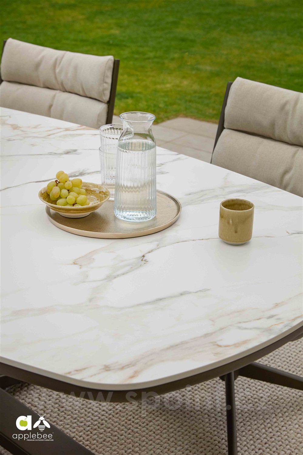 Oválný venkovní jídelní stůl Zanzibar od Apple Bee. Materiály: lakovaný hliníkový rám a kompozitní keramická deska.