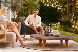 Konferenční stolek Aspect, Cane-line, kulatý 144 cm, teak, deska keramika/sklo