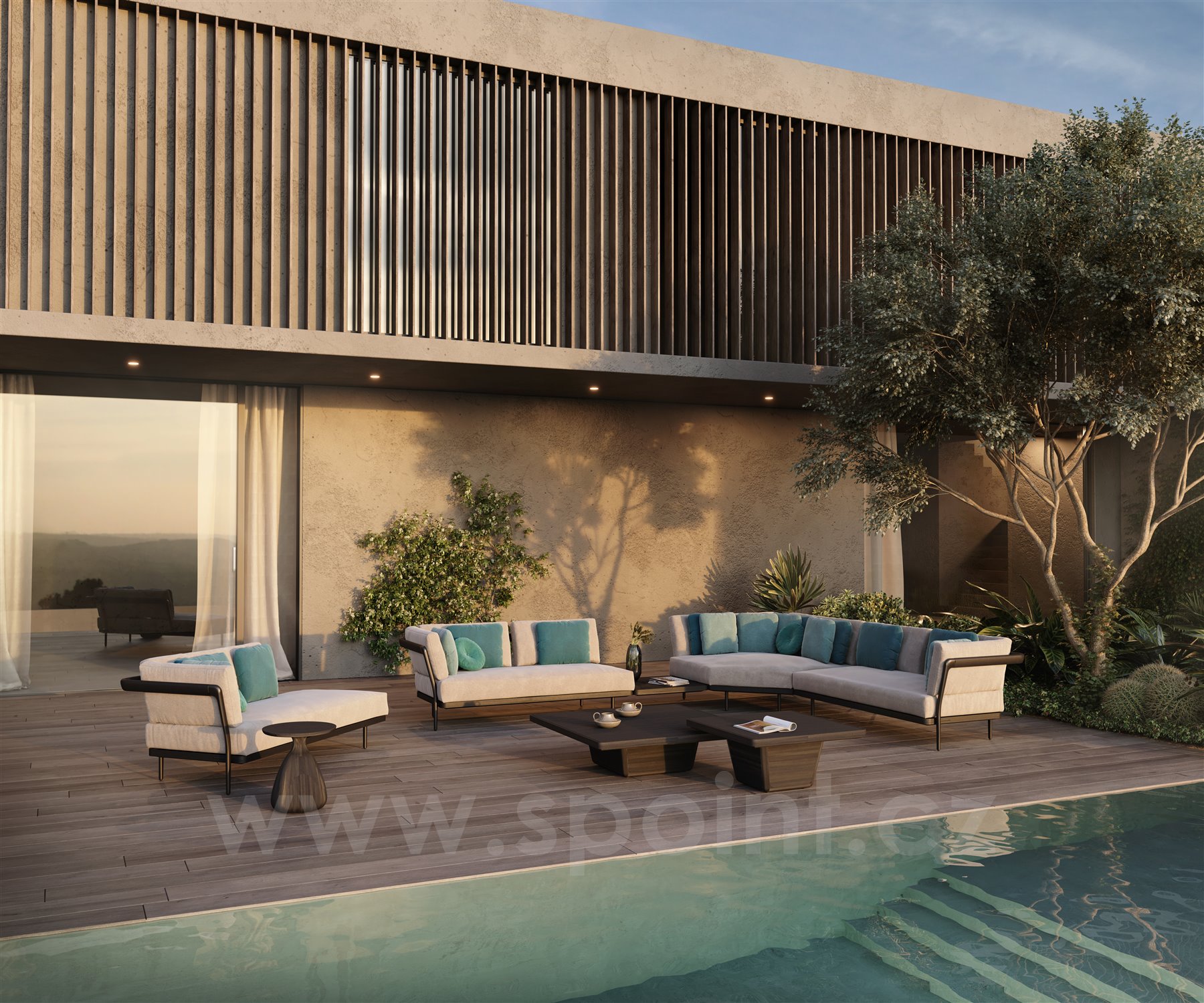 Celoteakový konferenční čtvercový stolek Cobi značky Manutti.