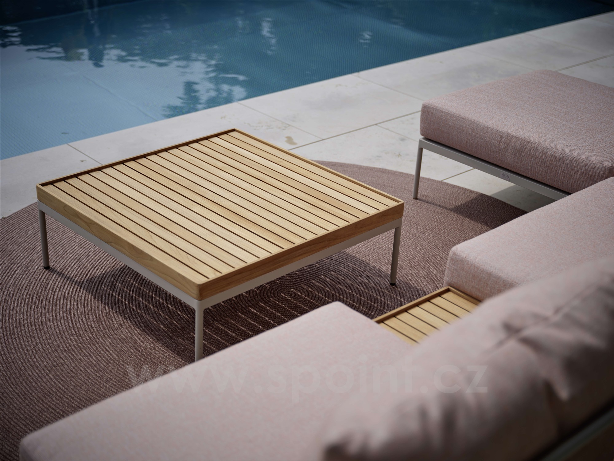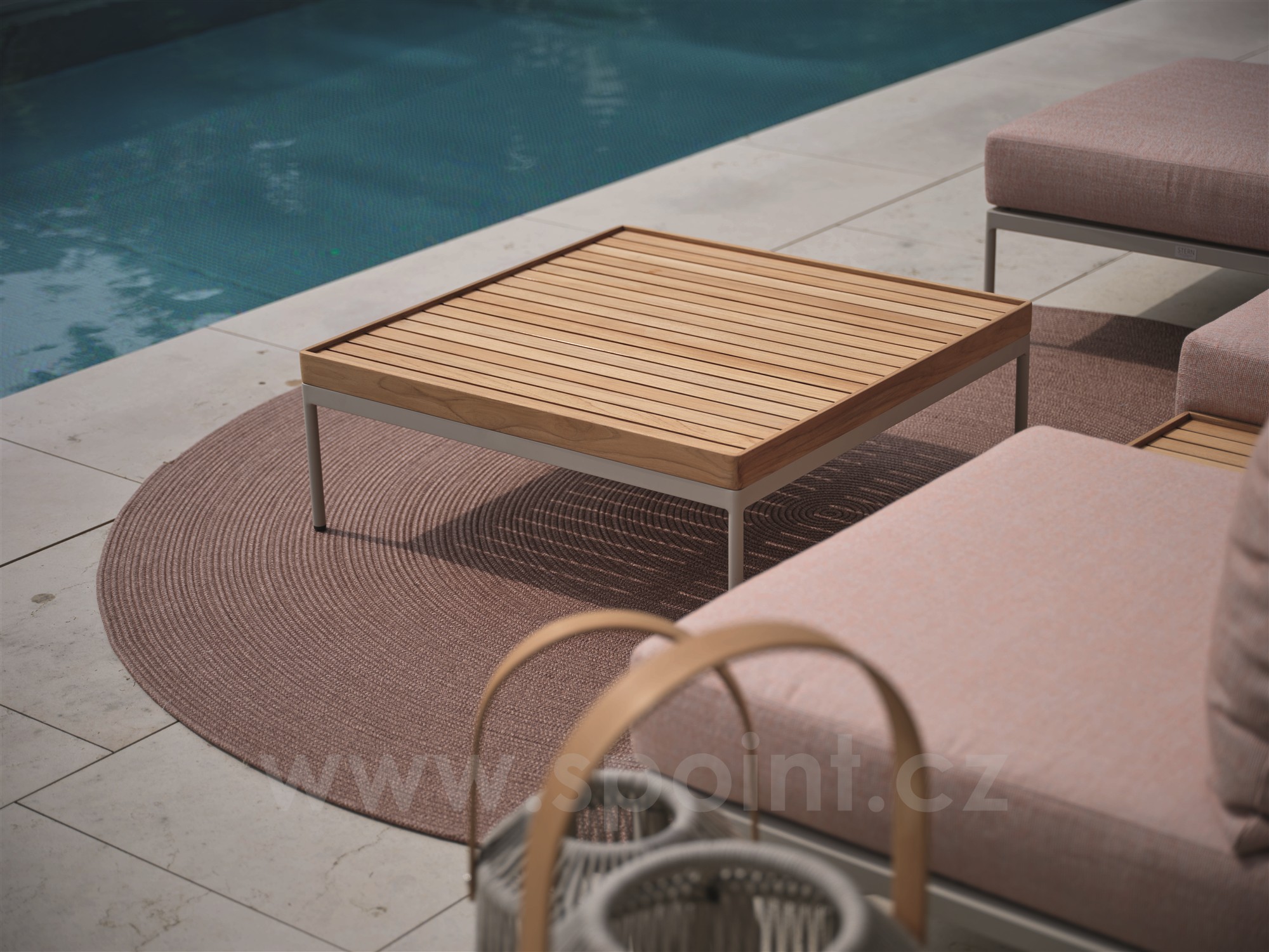Konferenční stolek Coco, Stern, čtvercový 80x80x40 cm, hliník, teak