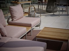 Konferenční stolek větší Coco, Stern, čtvercový 80x80x40 cm, rám hliník Greige, deska teak