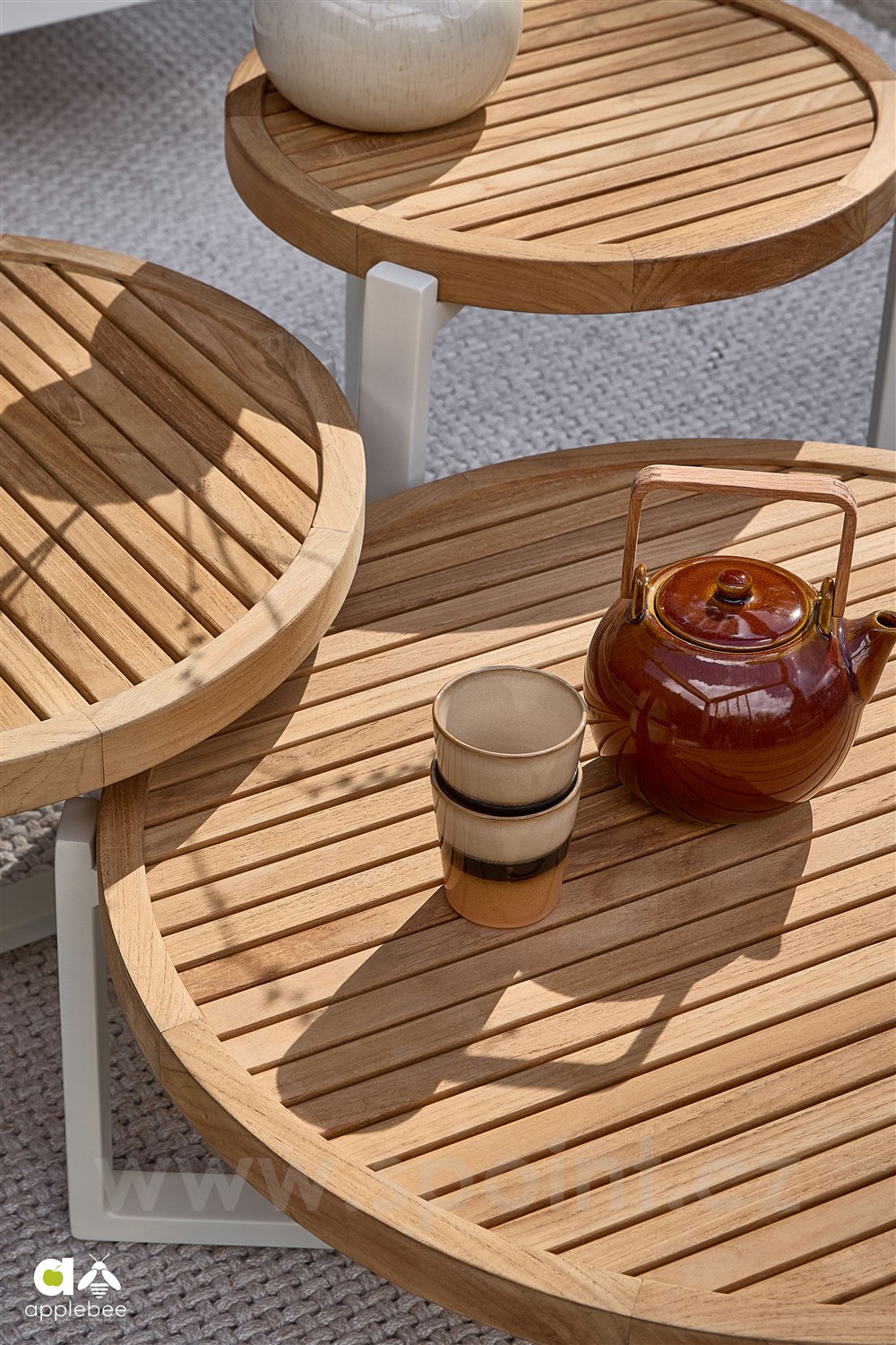 Konferenční stolek Monaco, Apple Bee, kulatý 60x41 cm, rám hliník Oyster (krémová), deska teak