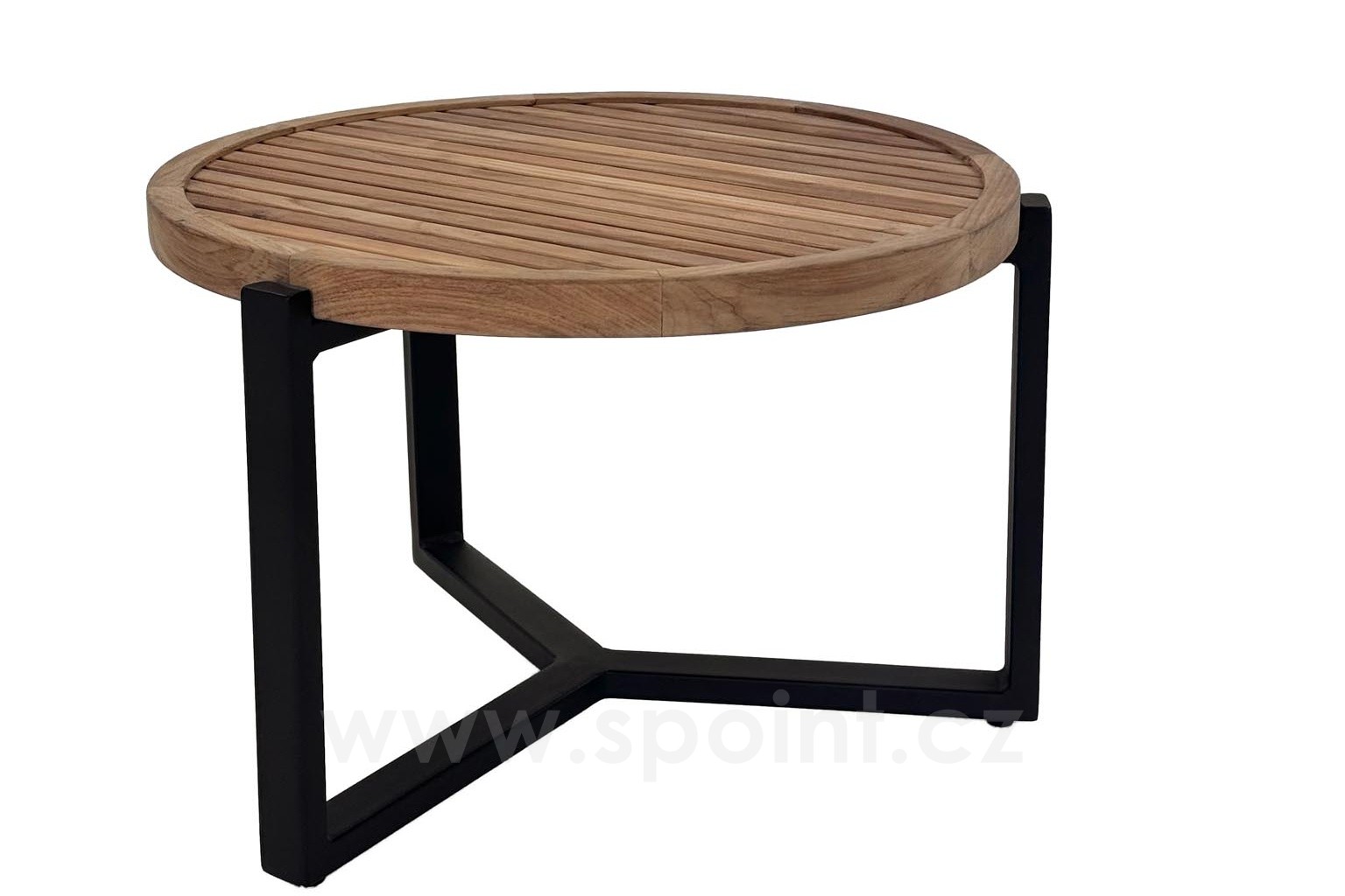 Konferenční stolek Monaco, Apple Bee, kulatý 60x41 cm, rám hliník Black (černá), deska teak